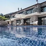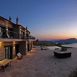 The property comprises 12 rooms overlooking the sea, and featuring an adjoining terrace and a balcony. Furnished with a sofa set and a work desk, they also have a stone fireplace. Offering a separate toilet and a shower, the bathrooms are appointed with hair dryers and bath sheets.